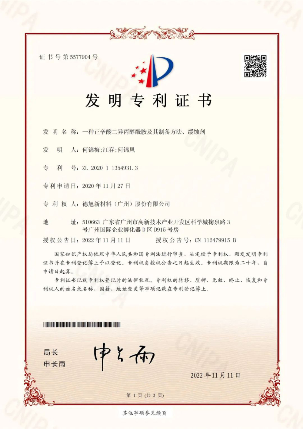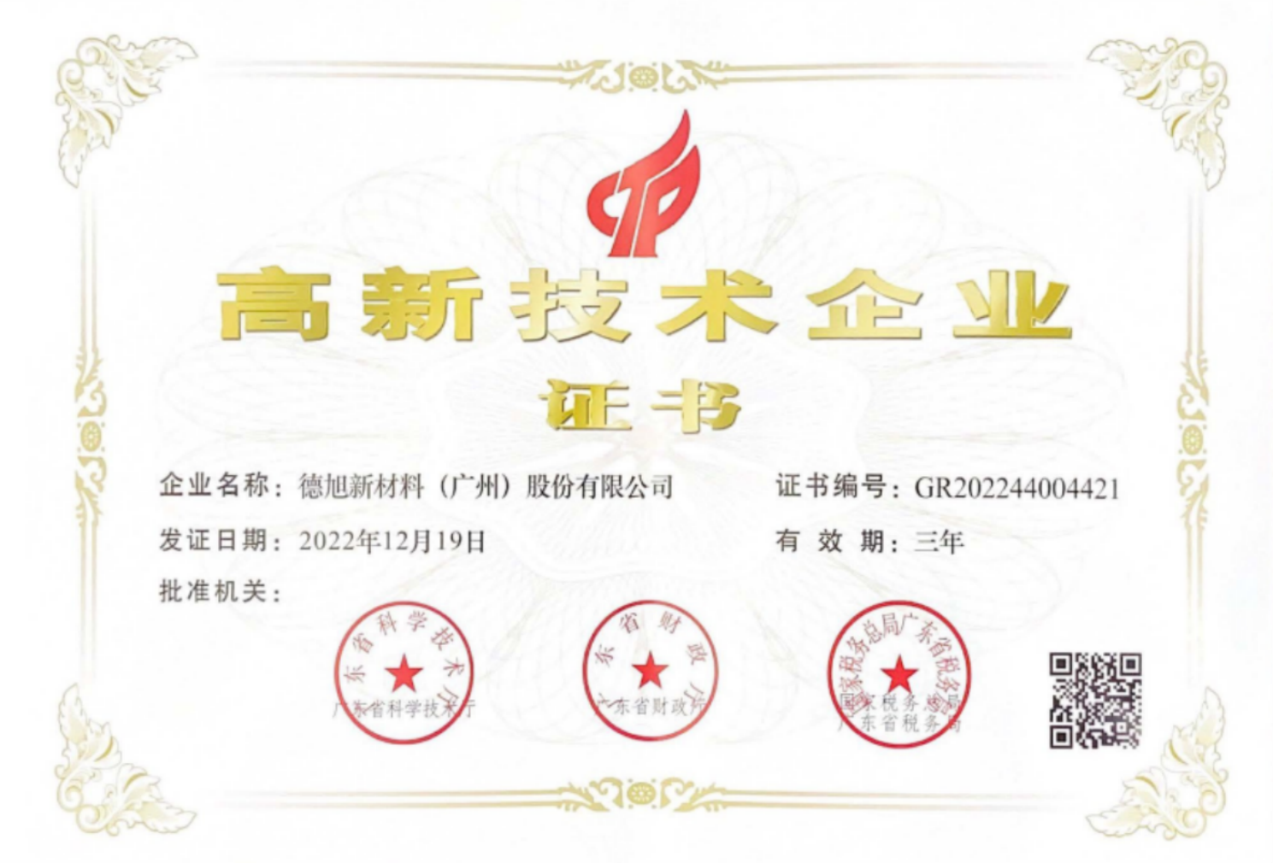 德旭新材料(廣州)股份有限公司成立于2012年,坐落于國內(nèi)新材料領域創(chuàng)新集聚區(qū)的廣州高新技術產(chǎn)業(yè)開發(fā)區(qū)核心位置——廣州科學城,是一家集研發(fā)、生產(chǎn)、銷售于一體且擁有自主知識產(chǎn)權的專精特新企業(yè)。長期專注于金屬材料的防腐蝕研究與創(chuàng)新,為汽車與船舶、航空航天、半導體及3C電子、新能源、水性防腐涂料等領域的金屬防腐蝕提供產(chǎn)品和解決方案。同時也服務于工業(yè)潤滑、金屬表面處理、工業(yè)、商用和民用重油污清洗和益智玩具等行業(yè)。公司產(chǎn)品獲得BASF(巴斯夫)、HP(惠普)、漢高、美泰、MOOSE、中國船舶、中國機械總院、安集、匯川、三環(huán)、晨光等國內(nèi)外知名企業(yè)的青睞。